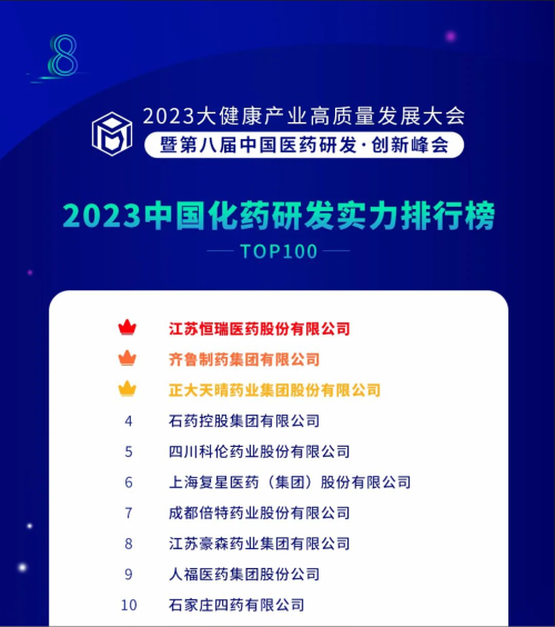 由药智网、中国药业杂志社主办的2023大健康产业高质量发展大会暨第八届中国医药研发•创新峰会于6月16日开幕,会上发布了《2023中国药品研发实力排行榜》系列榜单,DB真人医药凭借深厚的创新研发实力再创辉煌:荣登《2023中国药品研发综合实力排行榜TOP100》榜首、《2023中国化药研发实力排行榜TOP100》榜首。值得一提的是,今年是DB真人医药连续第6年入选《中国药品研发综合实力排行榜》榜首。